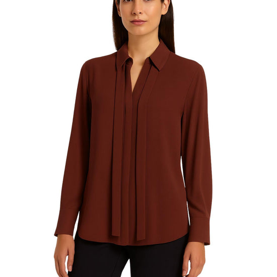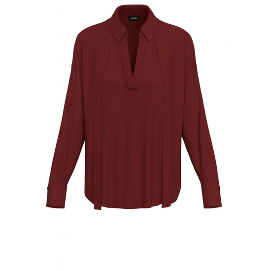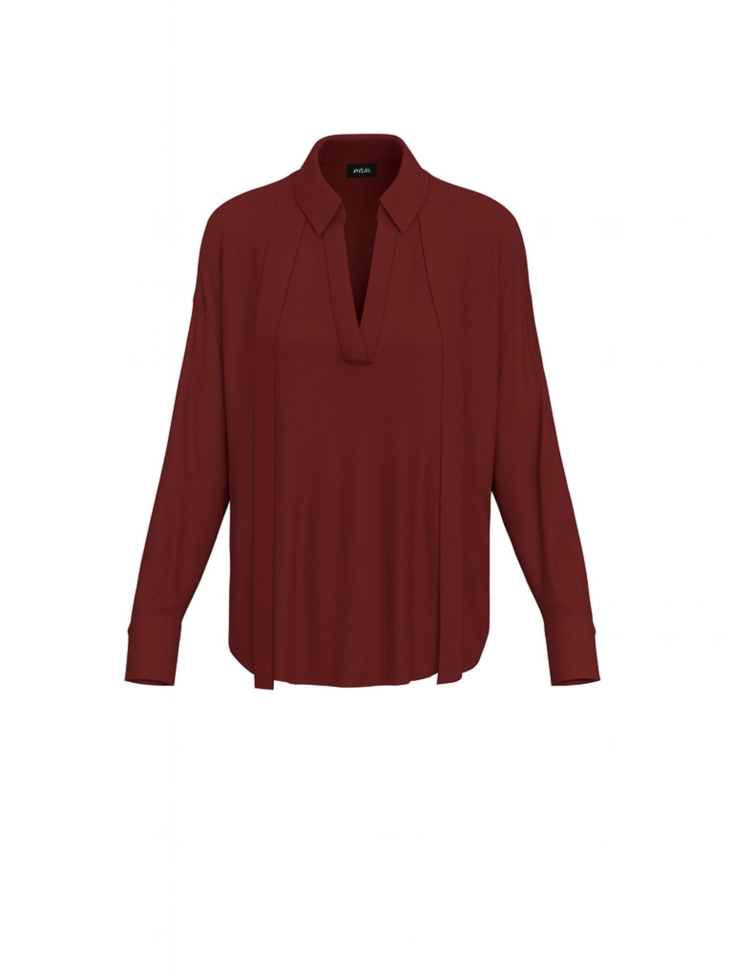 Blusa in raso martellato lavato dal fascino raffinato e contemporaneo. Le linee pulite e il fit dritto valorizzano la lucentezza del tessuto, mentre il collo a camicia con motivo di nastrino aggiunge un dettaglio elegante e femminile. Il retro con carré e cannoncino e il fondo stondato completano il design sofisticato, perfetto sia per look formali che casual chic. Fit dritto. Collo a camicia con motivo di nastrino. Retro con carré e cannoncino. Fondo stondato. Tessuto: 100% poliestere.
