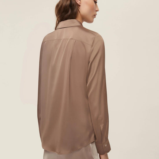 Versatile e sempre perfetta, la camicia in raso leggero attraversa le tue giornate con tutta l'eleganza dei capi senza tempo. Da declinare in versione chic con cappottino e longuette, o semplicemente con un denim. Camicia in raso leggero stretch. Vestibilità femminile leggermente sciancrato, collo a camicia e chiusura con bottoni a vista, maniche lunghe con bottone al polso, carré posteriore con doppia pince. Tessuto: 95% Poliestere, 5% Elastan
