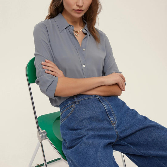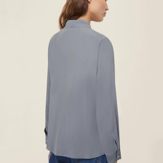 Nuova edizione della classica camicia femminile, in preziosa crêpe de Chine di misto seta. Essenziale nelle linee, ha tutta la versatilità che serve per accompagnarti dall'ufficio all'aperitivo. Tessuto principale contenente materie prime derivanti dalla cellulosa del legno, fibra ricavata nel rispetto del patrimonio forestale