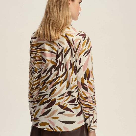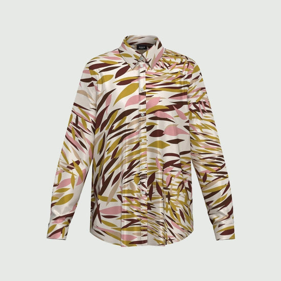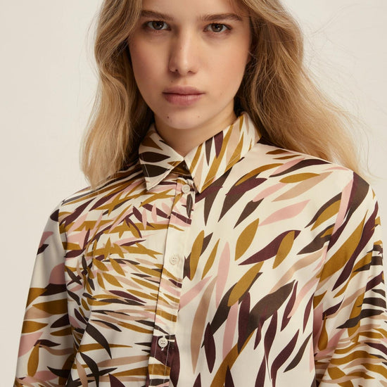 Grafica e disinvolta la camicia in twill stampato scivola sulla silhouette reinterpretando con freschezza un grande classico del guardaroba. Da abbinare a pantaloni tailoring e blazer on tone, oppure al denim preferito per un outfit easy chic. Tessuto principale contenente una percentuale di poliestere riciclato superiore al 50%. Camicia in twill stampato. Fit dritto. Collo a camicia con abbottonatura a vista. Polso con bottone. Fondo stondato. Composizione e lavaggio: In lavatrice max 30 gradi ridotta azione meccanica; non candeggiare; non asciugare in tamburo; asciugare appeso in ombra; ferro tiepido max 120 gradi c; lavare a secco delicato con percloroetilene. 100% poliestere.