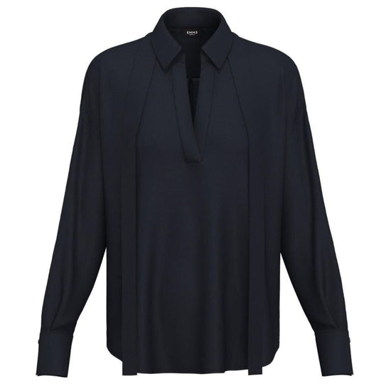 Collo a camicia con motivo di nastrino, retro con carré e cannoncino, fondo stondato. 100% Poliestere