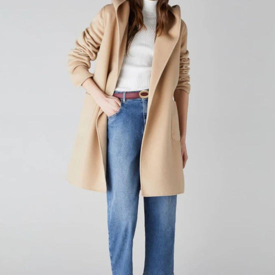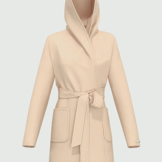 Cappotto in tessuto double, fit morbido, collo a scialle, con cappuccio, chiusura a vestaglia con cintura, tasche applicate. Tessuto 92% Poliestere, 7% Viscosa, 1% Elastan, Escluso filo di legatura