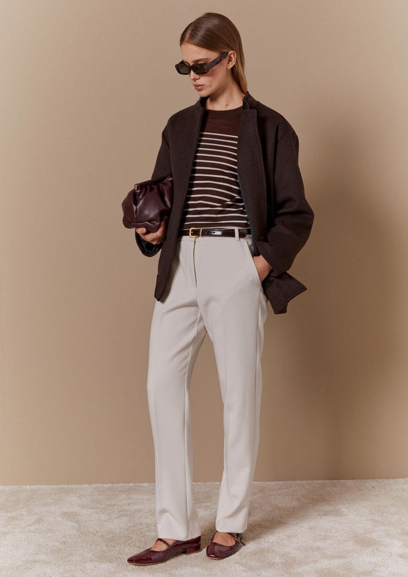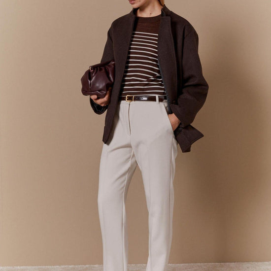 Ibrido sofisticato tra tailoring e spirito sportivo, questo cappotto reinterpreta liconico bomber con linee morbide e dettagli sartoriali. Il fondo arricciato e il collo alto aggiungono un tocco grafico, per un look che unisce comfort e carattere metropolitano. Cappotto in panno doppio di misto lana, con fodera interna ed etichetta Manteco. Fit morbido