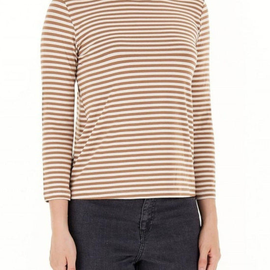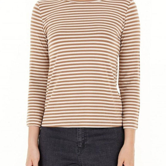 intramontabile marinère con manica lunga, in jersey stretch per un comfort a fior di pelle. La abbini con un blazer, con i jeans, con una maglia e non sbagli un look. Tessuto principale contenente materie prime derivanti dalla cellulosa del legno, fibra ricavata nel rispetto del patrimonio forestale. T-shirt in jersey di cotone stretch. Fit dritto, scollo stondato, maniche a tre quarti. Tessuto a maglia: 96% Viscosa, 4% Elastan