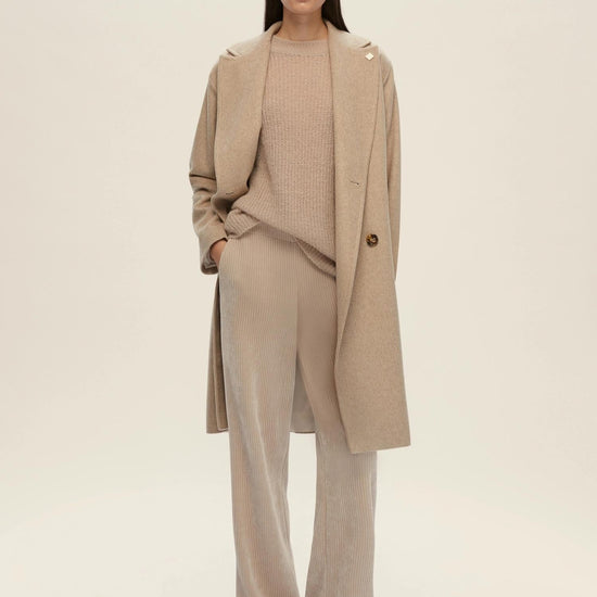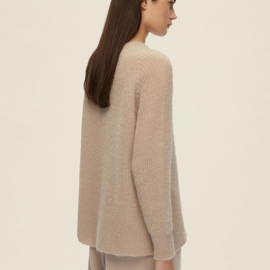 Femminilità attuale e linee pulite, in una maglia che fa dell'essenzialità il suo vessillo. Perfetta con pantaloni morbidi in velluto, segna i confini di una nuova eleganza metropolitana. Maglia in filato di misto alpaca e lana. Fit dritto. Scollo a giro. Manica raglan. Polsi e fondo capo con dettaglio a costine. Composizione e lavaggio: Lavare a mano acqua fredda max 40°; non candeggiare; non asciugare in tamburo; asciugare in piano in ombra; ferro tiepido max 120 gradi c; lavare a secco delicato con percloroetilene; non lavare ad umido professionale.; usare un panno tra capo e ferro.; usare detersivo neutro. 36% acrilica, 30% alpaca, 28% poliammide, 6% lana.
