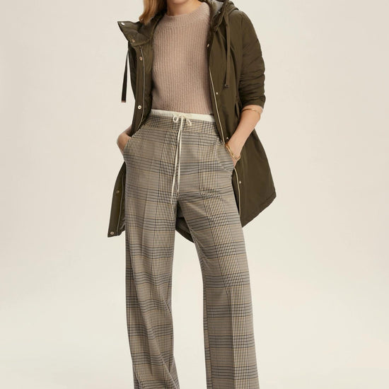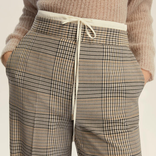 Pantalone in gabardina stretch tinto filo, che unisce eleganza sartoriale e modernità grazie al raffinato contrasto tra la struttura del tessuto e il dettaglio lucido in vita. Il fit dritto valorizza la silhouette con una linea pulita e contemporanea, mentre la doppia cintura con fascia interna in raso arricciato e coulisse introduce un tocco di stile inaspettato. Perfetto per look urbani sofisticati o abbinato a una camicia per un outfit più formale. Fit dritto. Motivo di doppia cintura con parte interna in raso lucido e coulisse. Apertura laterale con zip invisibile. Tasche laterali alla francese. Piega stirata fronte e retro. Tessuto: 72% poliestere, 21% viscosa, 7% elastan. Decorazioni escluse.