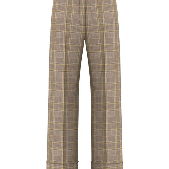 Allure informale e risvolto alto al fondo: ecco il pantalone perfetto per le tue giornate in città. La costruzione con piega stirata e tasche alla francese aggiunge una nota sartoriale, da completare con maglia morbida e ballerine. Pantalone in gabardina stretch tinto filo fantasia, Fit dritto, chiusura con bottone a vista, tasche laterali alla francese
