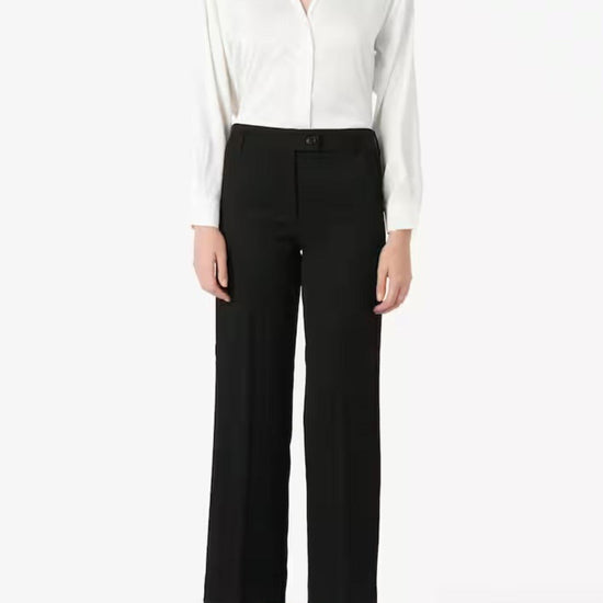 Pantalone in tessuto tecnico stretch con trama diagonale, pensato per garantire comfort e libertà di movimento senza rinunciare a uneleganza disinvolta. Le linee pulite e i piccoli dettagli sartoriali, come la piega stirata e le tasche a filetto, lo rendono ideale per look raffinati da città o per lufficio. Facile da abbinare con bluse e blazer, è un capo versatile e intramontabile. Fit dritto. Chiusura con bottone a vista e zip nascosta. Cintura con passanti. Tasche laterali alla francese e posteriori a filetto. Piega stirata fronte e retro. Tessuto: 91% poliestere, 9% elastan.