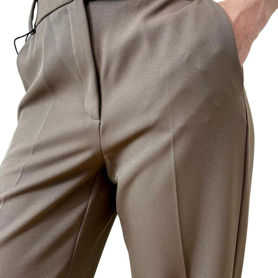 Pantalone in tessuto tecnico stretch con trama diagonale, pensato per garantire comfort e libertà di movimento senza rinunciare a uneleganza disinvolta. Le linee pulite e i piccoli dettagli sartoriali, come la piega stirata e le tasche a filetto, lo rendono ideale per look raffinati da città o per lufficio. Facile da abbinare con bluse e blazer, è un capo versatile e intramontabile. Fit dritto. Chiusura con bottone a vista e zip nascosta. Cintura con passanti. Tasche laterali alla francese e posteriori a filetto. Piega stirata fronte e retro. Tessuto: 91% poliestere, 9% elastan.