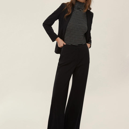 Se cerchi un pantalone versatile, confortevole, che slancia le forme e ti accompagna in ogni occasione, questo in jersey è quello che fa per te. Con linea pulita in vita e piega stirata per un look subito elegante. Pantalone in jersey stretch di misto viscosa lavorato con punto Milano. Fit dritto. Chiusura con bottone a pressione e zip nascosta. Tasche laterali alla francese e posteriori a filetto. Piega stirata fronte e retro. Tessuto: 62% Viscosa, 32% Poliammide, 6% Elastan.