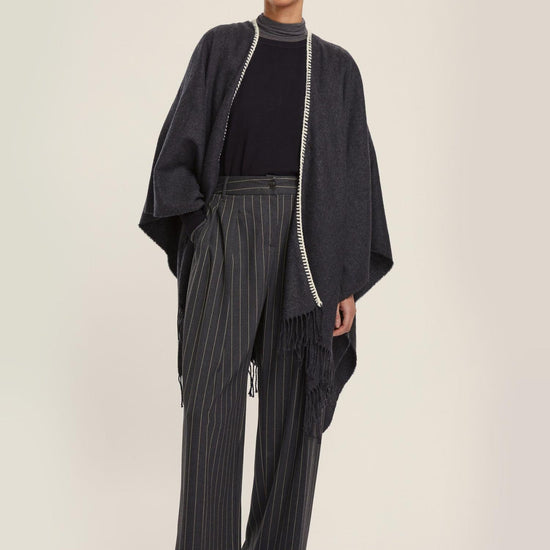 Emme Marella Poncho con frange Donna Heidi Grigio scuro