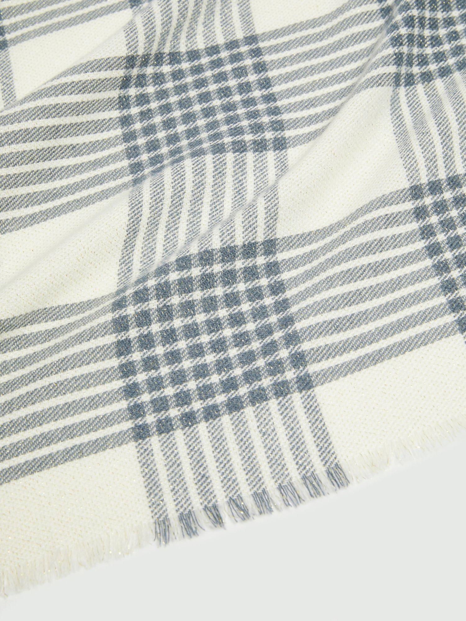 Accendi la stagione fredda con i delicati riflessi di questa stola in viscosa e lurex. Morbida e avvolgente, gioca con una fantasia timeless perfetta con i blazer o con le bluse più informali. Stola in tessuto di misto viscosa con filo di lurex. Frange al fondo. Dimensione: 77 x 197 cm. Composizione: 79% Poliestere, 20% Viscosa, 1% Fibra Metallizzata.