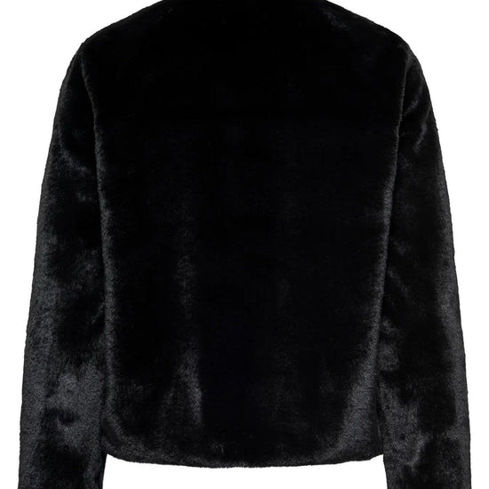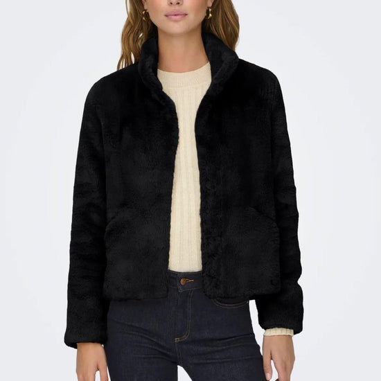 Giacca in finta pelliccia dal design caldo e avvolgente, perfetta per affrontare linverno con stile. Il modello presenta collo alto, maniche lunghe, chiusura frontale con bottoni e pratiche tasche laterali. La fodera in poliestere assicura comfort e protezione dal freddo, mentre il tessuto in pelliccia sintetica dona un aspetto elegante e contemporaneo. Realizzata in 100% poliestere riciclato, rappresenta una scelta sostenibile che unisce moda e responsabilità ambientale.