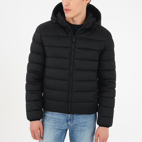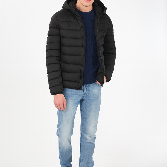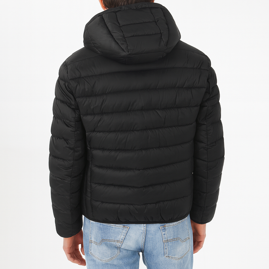 Giubbino Uomo Trapuntato Con Cappuccio Nero
