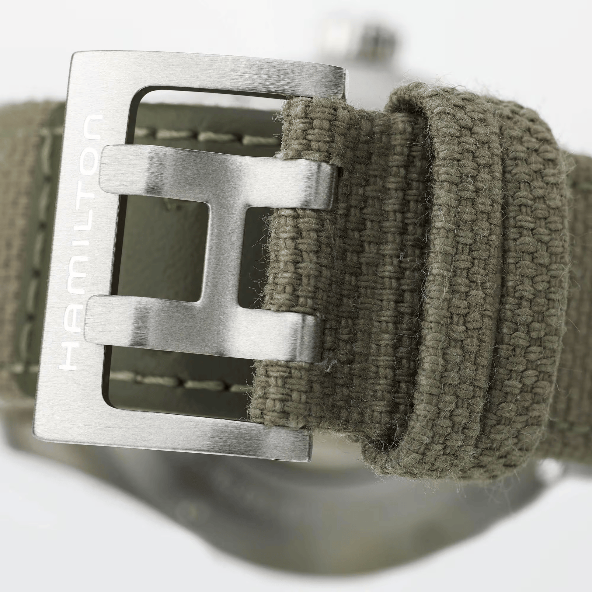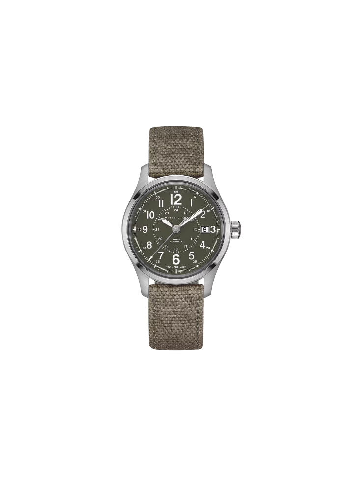 Un’introduzione che combina design e funzionalità essenziali. L’Hamilton Khaki Field Automatic H70605963 si distingue per la sua robusta cassa in acciaio da 42 mm, progettata per affrontare qualsiasi sfida quotidiana. Il quadrante verde militare, in perfetto stile field watch, offre massima leggibilità grazie ai numeri bianchi a contrasto, mentre il movimento automatico H-10 assicura un’autonomia straordinaria di 80 ore.