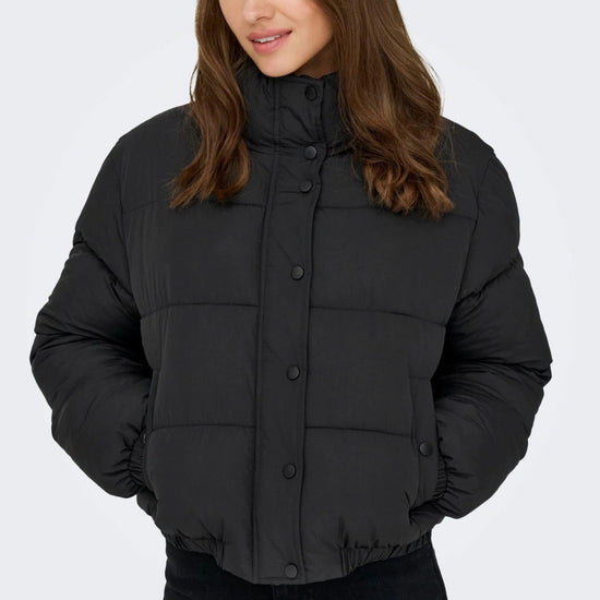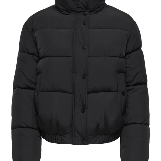 Piumino con cappuccio, maniche lunghe, polsino con elastico, chiusura con bottoni e zip, modello corto