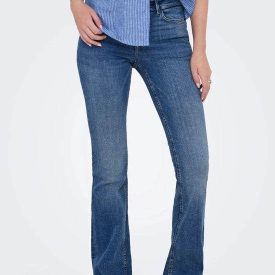 JDY è un marchio internazionale di moda full-concept che propone prodotti accessibili e di tendenza ai consumatori attenti alla moda. Jeans flared fit, patta con bottoni, tasche posteriori, coin poket, tasche frontali, vita media, passanti per cintura Questi jeans flare avvolgono fianchi e cosce e si allargano dal ginocchio in giù. 98% Cotone, 2% Elastan