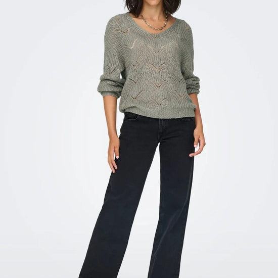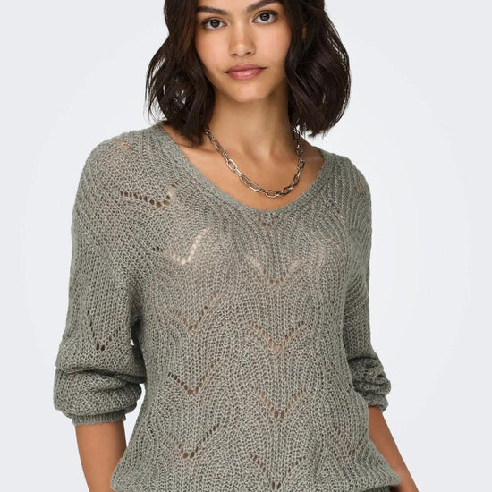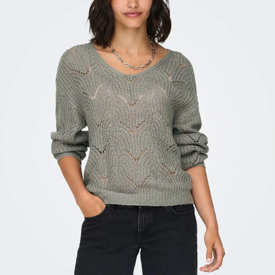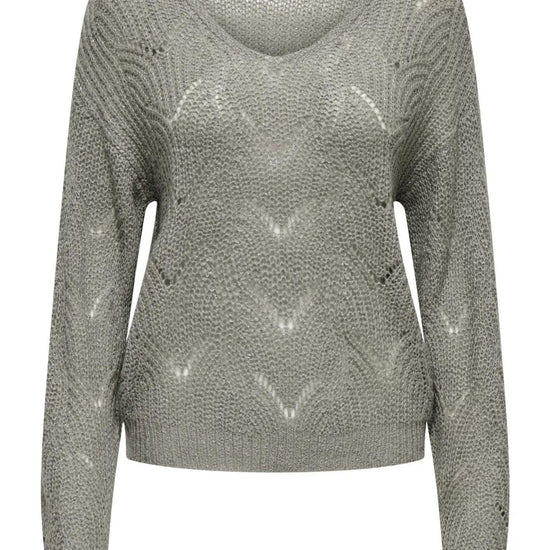 Pullover in maglia dal design elegante e femminile, perfetto per aggiungere un tocco luminoso ai tuoi outfit. Realizzato in morbido tessuto strutturato con filato glitterato, unisce comfort e stile in un capo versatile adatto a ogni stagione. Presenta scollo a V, maniche lunghe con spalle scese e polsini a coste per una vestibilità comoda e naturale. Ideale da abbinare a jeans o gonne per un look casual chic. Composizione: 93% acrilico, 7% fibre metalliche.