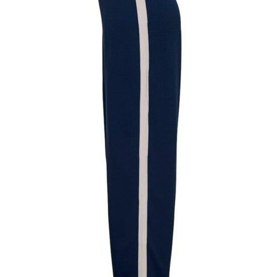 Semplici pantaloni neri senza tasche e con gamba larga. Questi pantaloni presentano una striscia a contrasto lungo il lato della gamba. 50% poliestere riciclato, 45% poliestere, 5% elastan