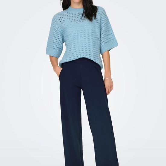Pantaloni a gamba larga e vita alta elasticizzata, wide leg fit. 95% Poliestere, 5% Elastan