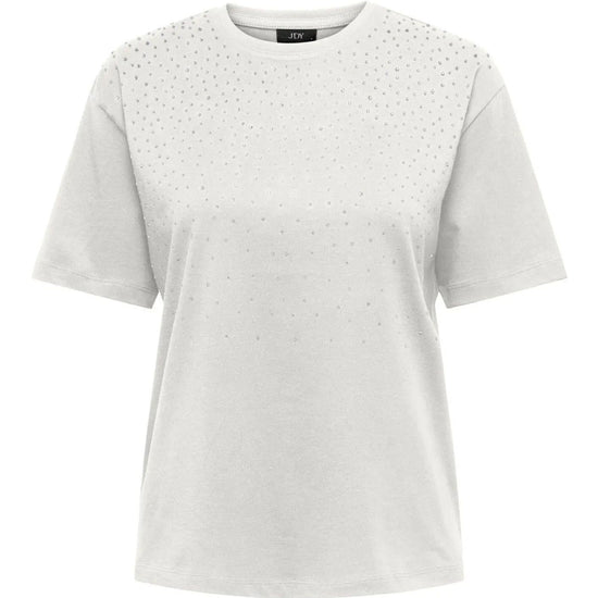 Cambia il tuo outfit quotidiano in un secondo aggiungendo un top femminile per un look morbido e pulito. Il jersey è un materiale morbido ed elasticizzato, progettato per il massimo comfort. JDY è un marchio di moda internazionale full-concept che offre prodotti convenienti e di tendenza al consumatore attento alla moda. T-shirt girocollo, maniche corte, dettagli a pailettes, regular fit. 100% cotone