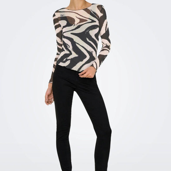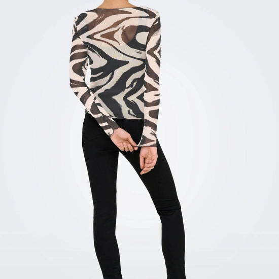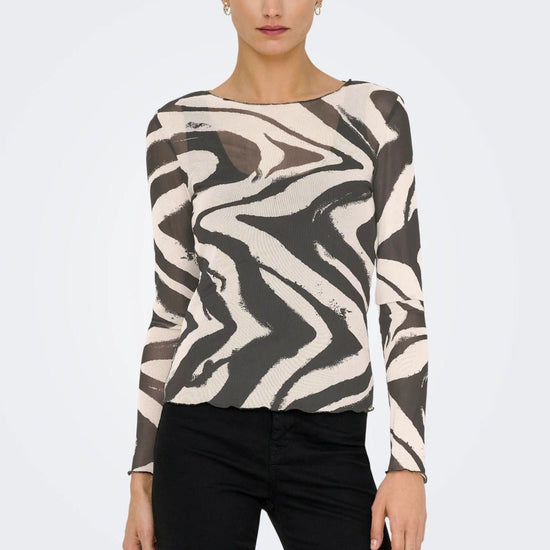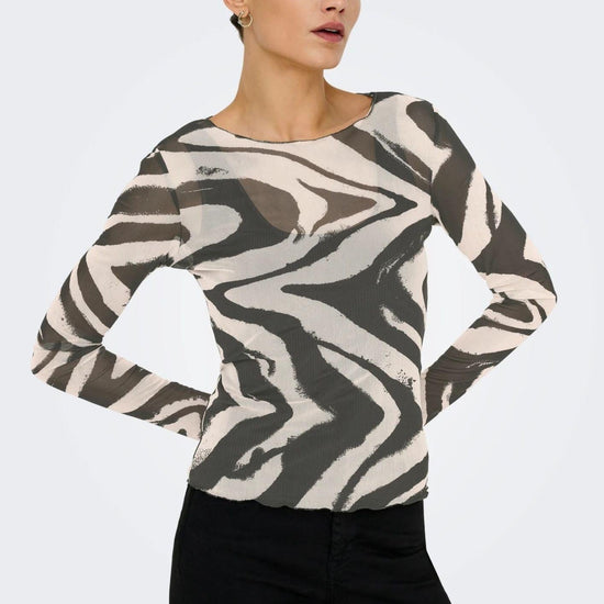 Jacqueline De Yong Top Donna Elsa Grigio e Bianco Animalier