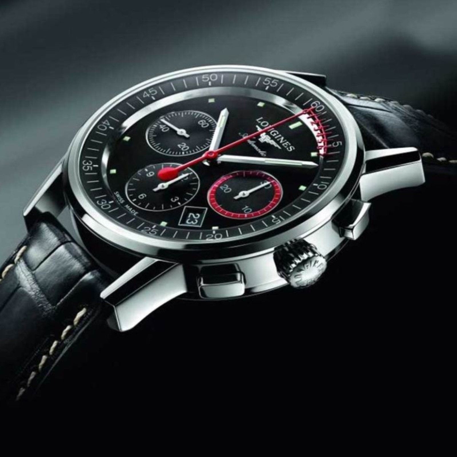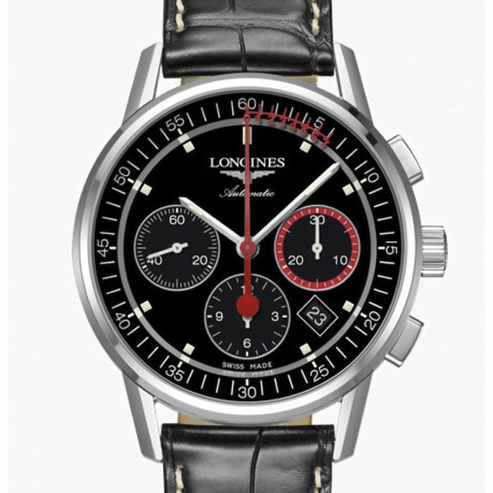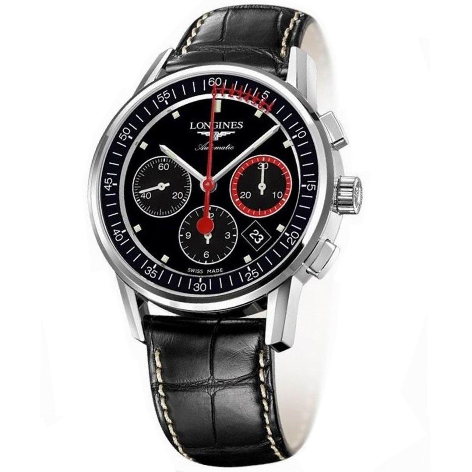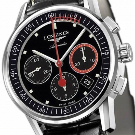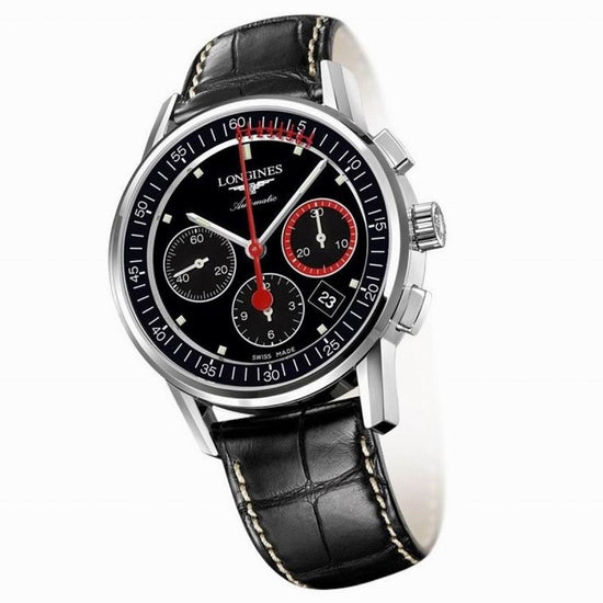 Longines orologio Column-Wheel Chronograph Record 41mm nero acciaio automatico L4.754.4.52.4