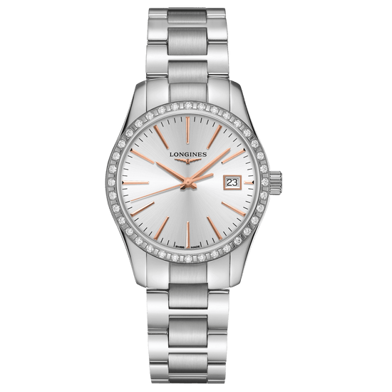 Longines orologio Conquest Classic 34mm argento diamanti quarzo acciaio L2.386.0.72.6