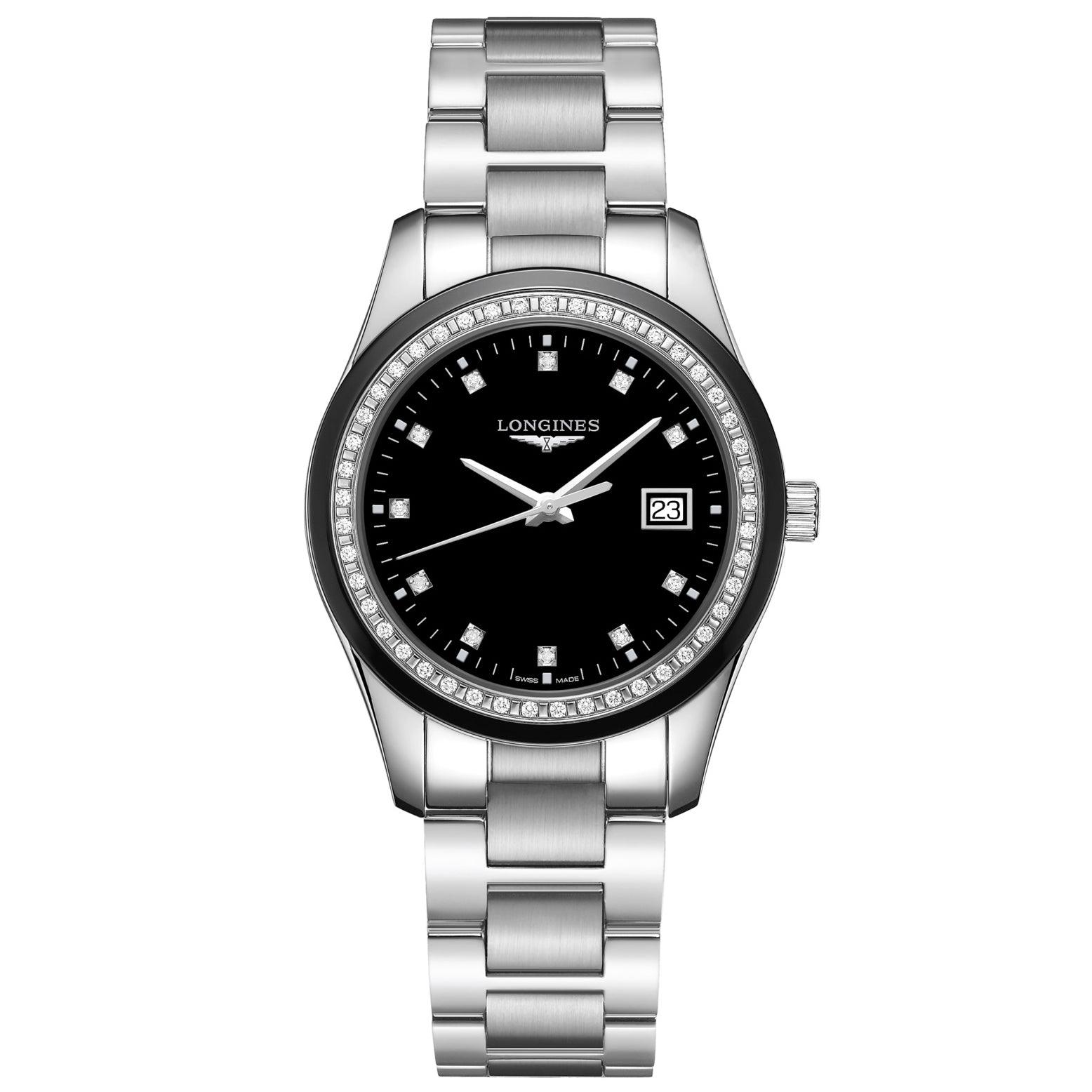 Longines orologio Conquest Classic 36mm nero diamanti quarzo acciaio L2.387.0.57.6