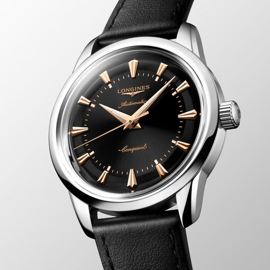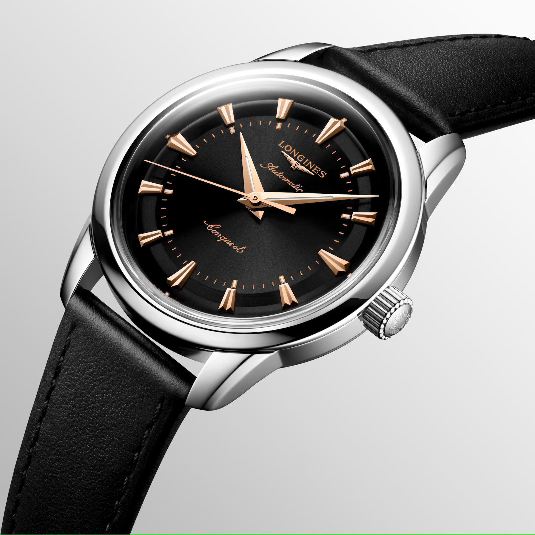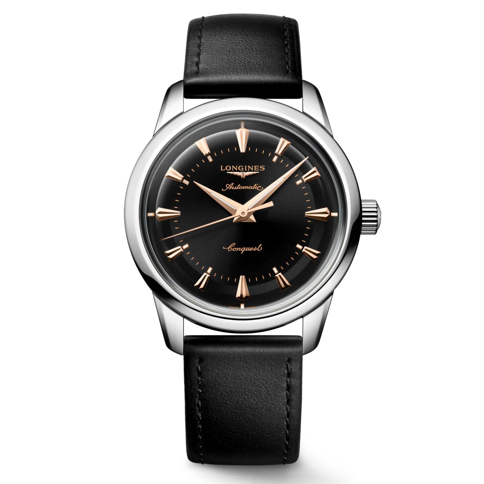 Longines orologio Conquest Heritage 38mm nero automatico acciaio L1.649.4.52.2