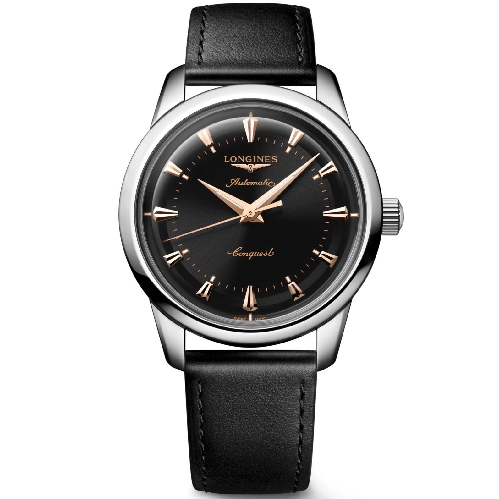 Longines orologio Conquest Heritage 40mm nero automatico acciaio L1.650.4.52.2