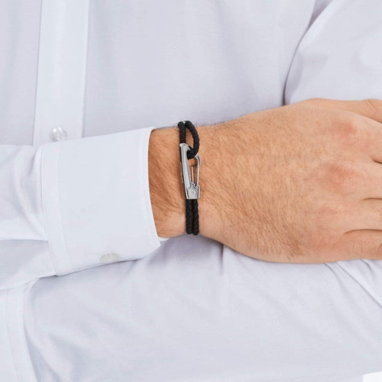 Montblanc bracciale uomo pelle intrecciata nera chiusura acciaio misura M 11499063