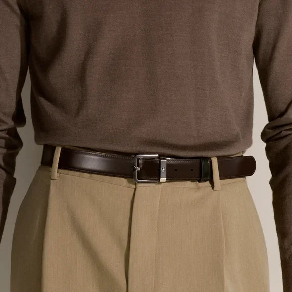 Montblanc cintura reversibile in pelle nero/testa di moro da 35mm con fibbia ardiglione 132873