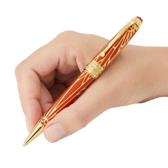 Ispirata ai primi disegni dei nostri archivi, la penna a sfera Montblanc Meisterstück della collezione The Origin Collection Solitaire Midsize 131356 unisce eleganza e modernità. Con finitura in oro e lacca color corallo, il complesso motivo sul corpo e sul cappuccio cattura lo spirito originale e aggiunge un tocco unico alla tua scrittura.