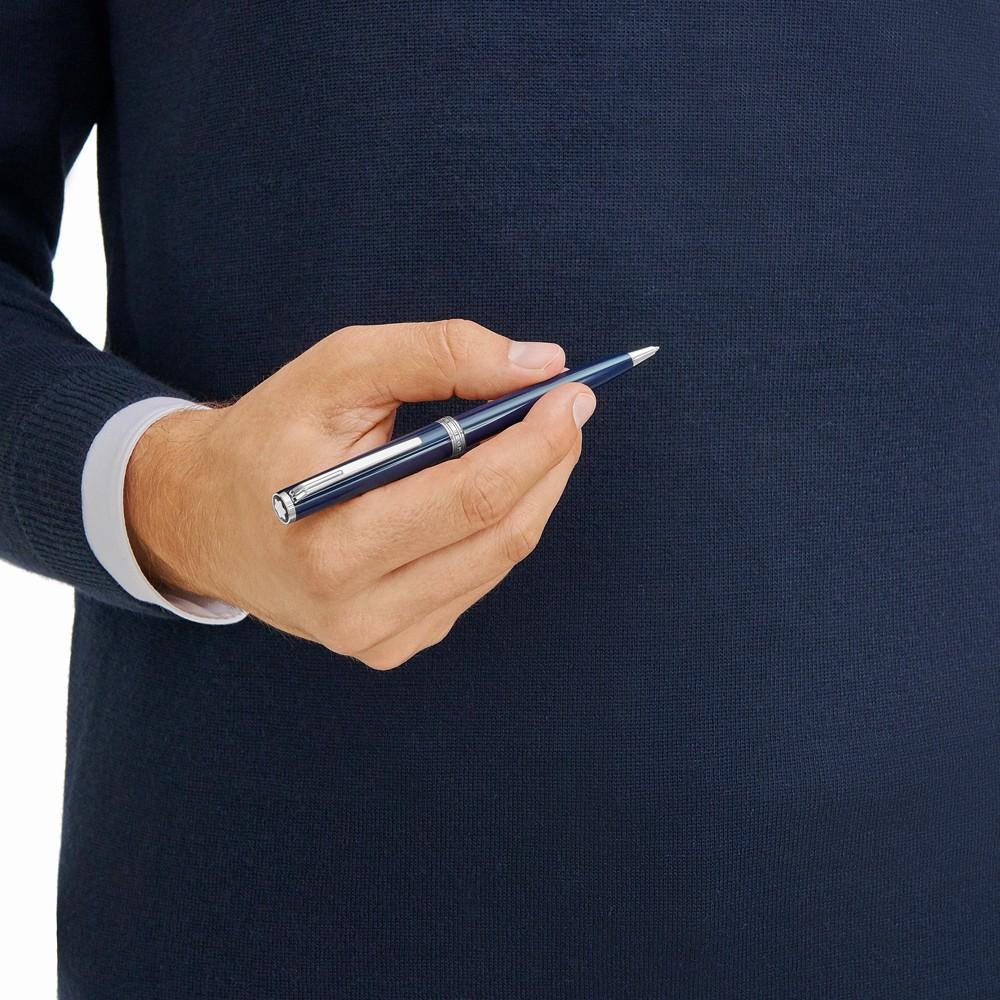 Ispirato al movimento architettonico della Bauhaus, questo strumento da scrittura, il cui nome deriva dallo storico marchio PIX, presenta un design purista e risulta estremamente semplice da usare. Corpo e cappuccio in pregiata resina blu con eleganti dettagli finitura platino. Disponibile solo in negozi selezionati e online – per ulteriori informazioni contattare il nostro Servizio Clienti.