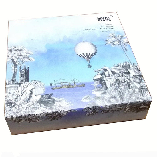 La collezione Meisterstück Around the World in 80 Days si ispira al famoso romanzo di avventura di Jules Verne. La penna a sfera Solitaire media in lacca blu traslucida con finitura dégradé rappresenta la prima parte del viaggio. I protagonisti viaggiano su una nave a vapore da Londra a Bombay, attraversando il Mar Mediterraneo e il Canale di Suez. Il cappuccio e il corpo presentano elementi iconici del romanzo: onde del mare, semi di carte e una cartuccia con il disegno di una nave a vapore inciso al laser. La parte superiore del cappuccio presenta la goffratura della durata del viaggio, 18 giorni da Londra a Bombay e 80 giorni in totale.