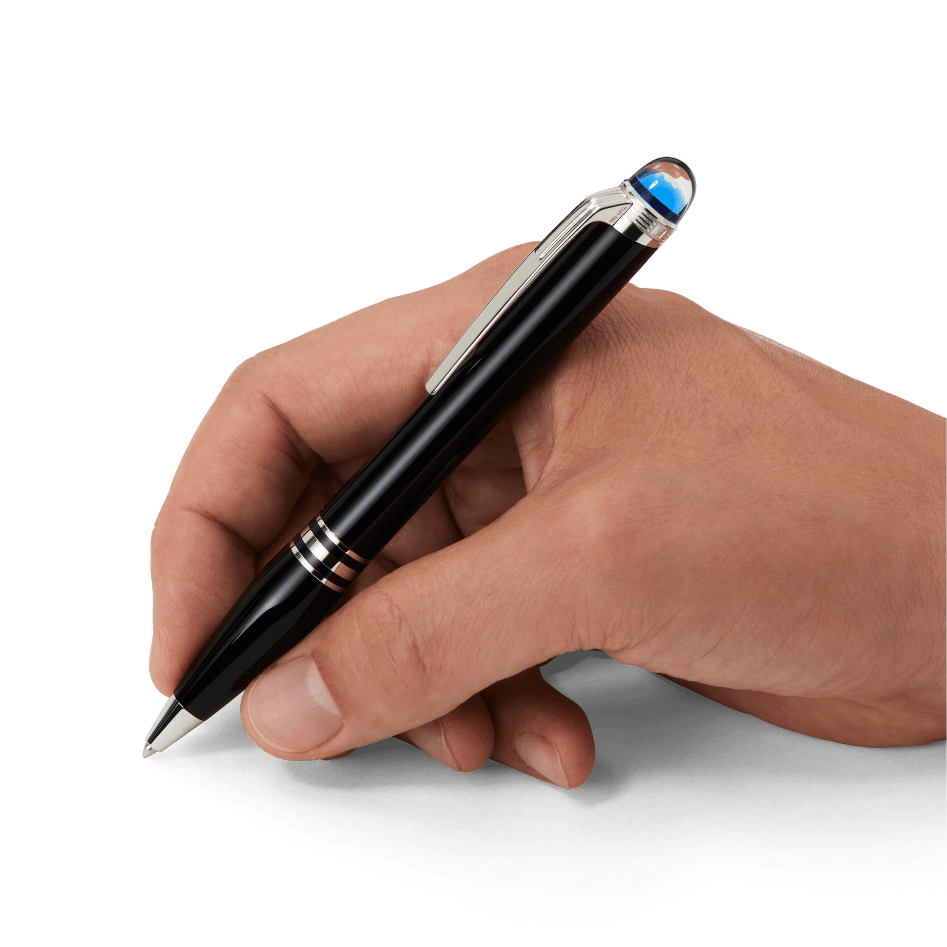 La nuova StarWalker racconta di un viaggio fra le stelle, alla scoperta del cosmo e di galassie sconosciute, per partecipare a una delle avventure più misteriose e potenti del genere umano: l’esplorazione dello spazio. Il nuovo design della collezione celebra l’emozione immensa, descritta da tutti gli astronauti, della visione del nostro pianeta azzurro che fluttua nella vastità sconfinata dello spazio. L’esclusiva tecnologia dell’emblema StarWalker presenta una cupoletta azzurra traslucida sotto l’emblema Montblanc, ispirata alla Terra che emerge dall’orizzonte lunare. La StarWalker Precious Resin si presenta con dettagli finitura platino e corpo in pregiata resina nera.