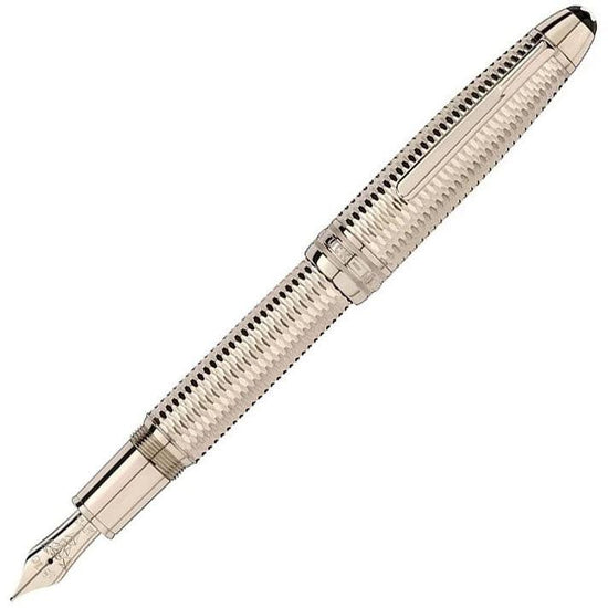 La collezione Montblanc Meisterstück Geometry nasce dal desiderio di unire il design classico di Meisterstück a materiali diversi da quelli della classica collezione Meisterstück. Il corpo e il cappuccio della lussuosa penna stilografica presentano l’incisione di un motivo geometrico tridimensionale con effetto ottico in una sofisticata finitura in oro distintivo. Il cappuccio presenta l’iconico emblema bianco Montblanc, una clip con finitura oro distintivo e tre anelli incisi con il marchio Montblanc. La stilografica è impreziosita da un pennino in oro Au750 / 18K finitura rodio lavorato a mano. Con oro distintivo e/o rivestimento in oro distintivo, Montblanc descrive la tonalità luminosa di oro giallo che è diventata un simbolo degli strumenti da scrittura della Maison.