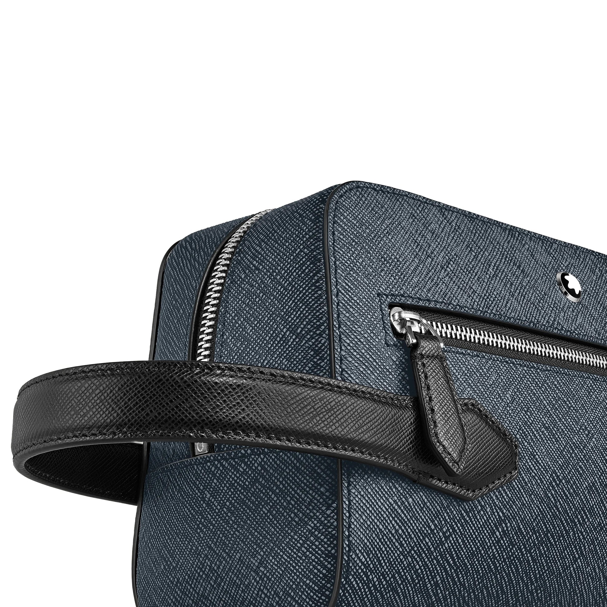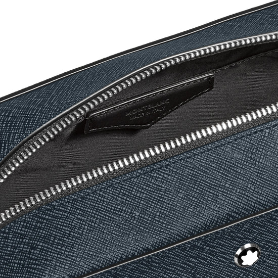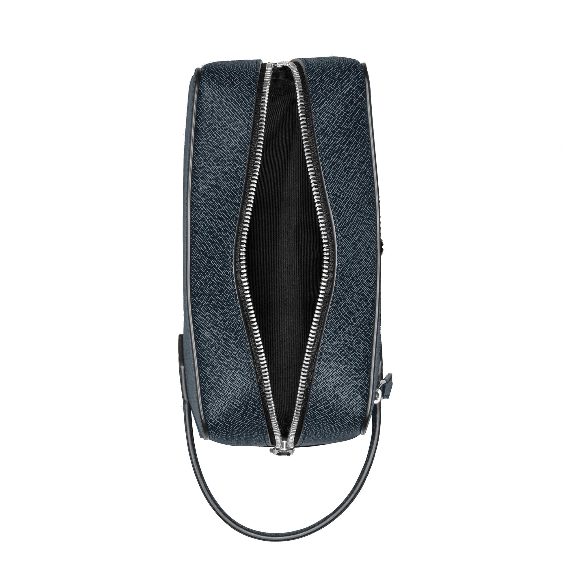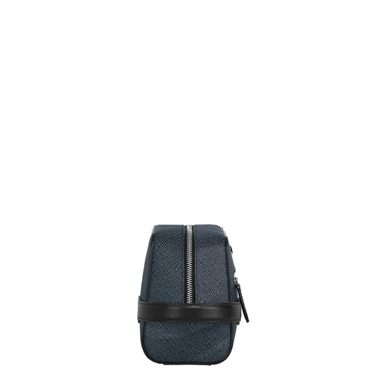 Per gli affari o per le vacanze, questa pochette è un must-have da viaggio. Realizzata in pelle Sartorial goffrata in una raffinata combinazione bicolore di blu e nero classici, presenta un interno spazioso e un esterno con tasca con cerniera per i tuoi oggetti essenziali. Grazie ai manici in pelle, puoi portarla a mano o riporla in una borsa da viaggio.
