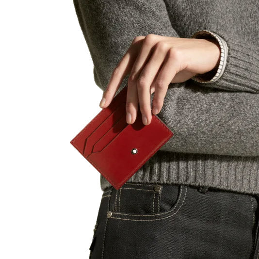 Il Montblanc porta carte Meisterstück è l'elegante compagno di tutti i giorni, ideale da portare in tasca. Realizzato in pregiata pelle di colore ruggine, consente di riporre fino a sei carte di credito e offre una tasca aggiuntiva per piccoli oggetti essenziali. Mantieni tutto al sicuro e organizzato con questo porta carte di alta qualità.