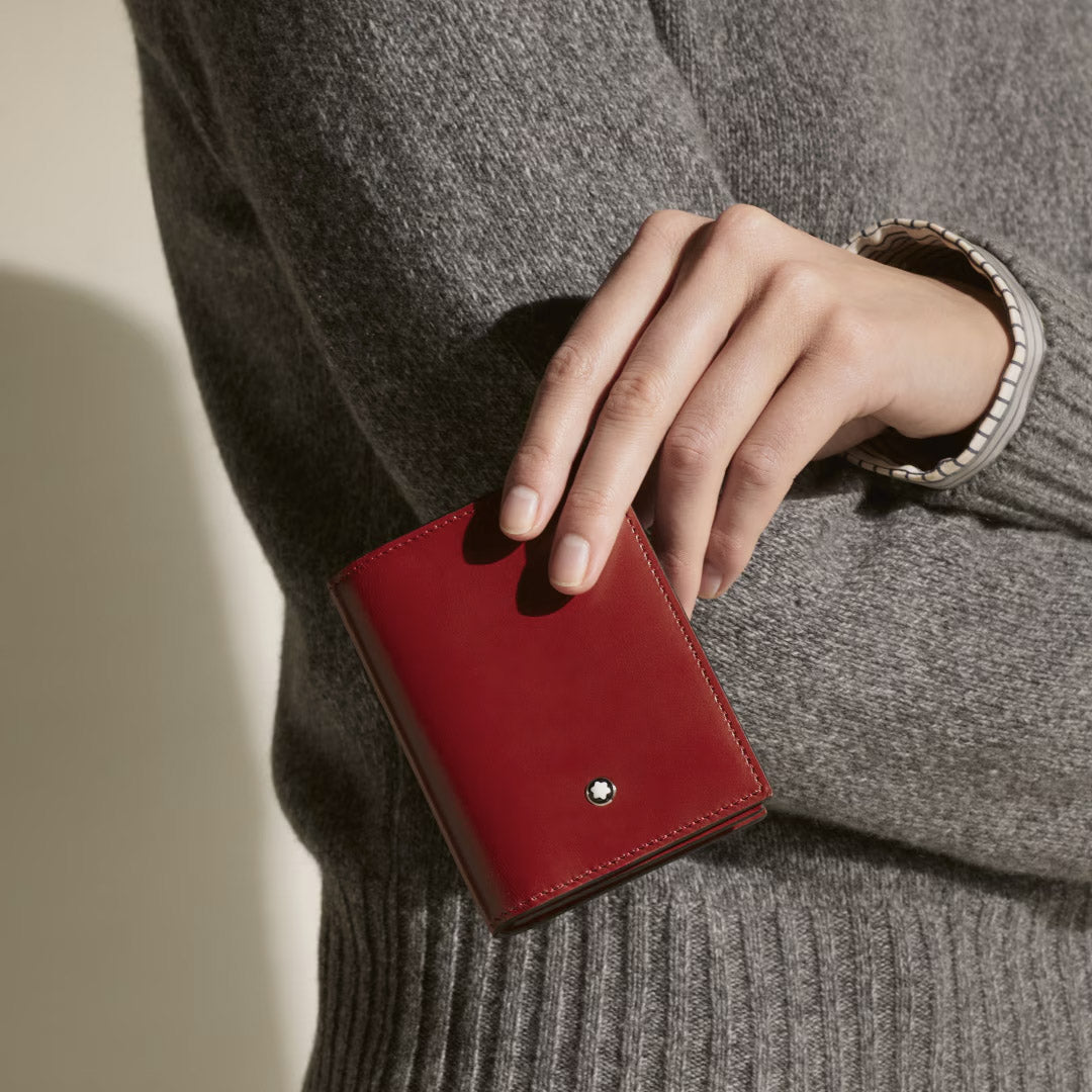 Il compagno perfetto di tutti i giorni, il porta carte Meisterstück 4cc è dotato di uno spazio per biglietti da visita e quattro scomparti per carte di credito. La calda pelle color ruggine e l'iconico emblema Montblanc sul davanti completano lo stile.