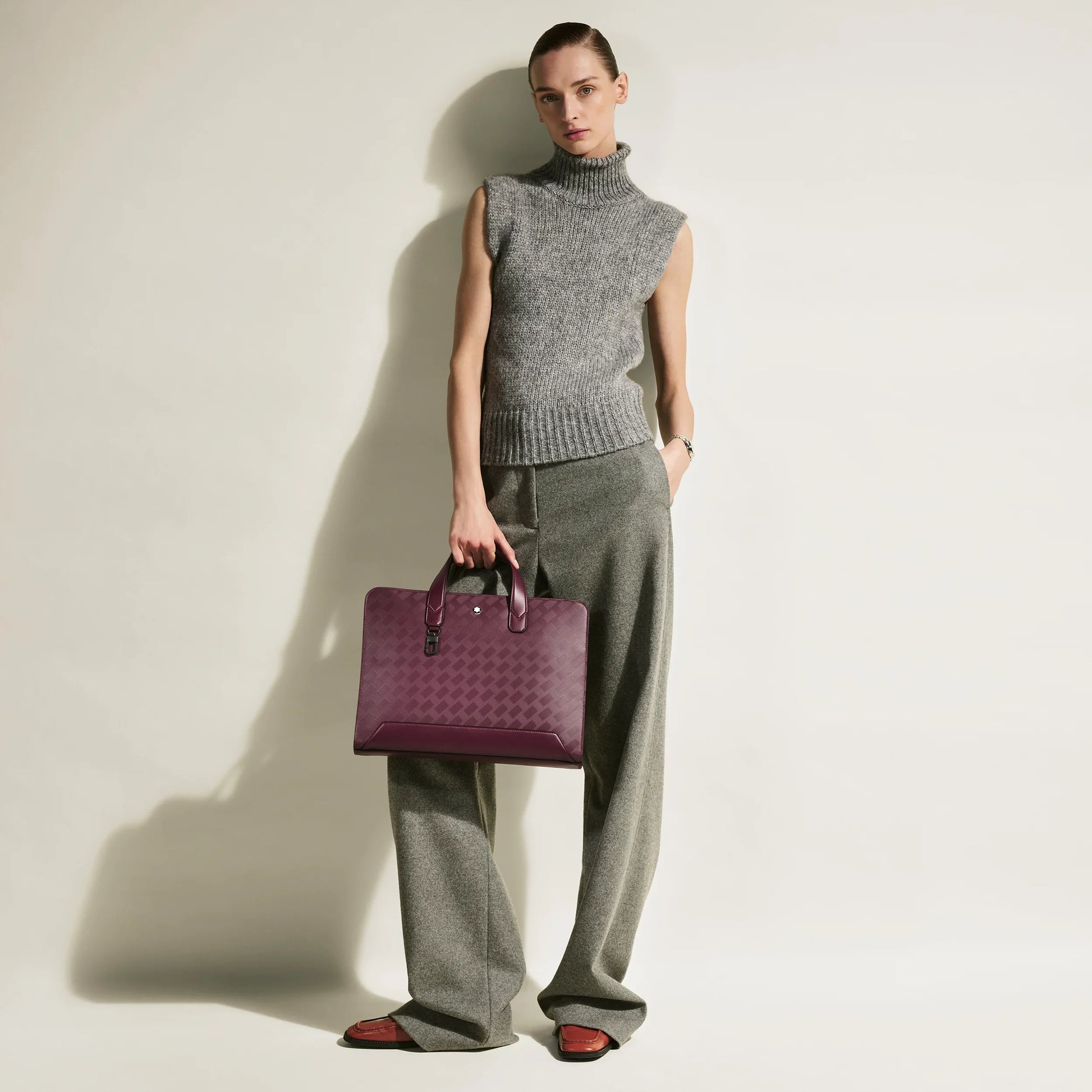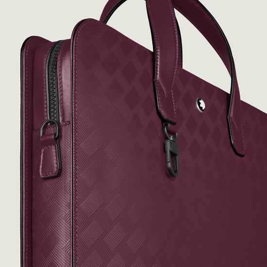 Pensato per eleganti professionisti urbani, questo portadocumenti non passa inosservato grazie alla pelle goffrata con il distintivo motivo Extreme 3.0 e i raffinati dettagli in metallo nero. Rivestito di pelle dai toni del cassis, all’interno vanta scomparti per documenti A4, strumenti da scrittura e oggetti essenziali organizzati grazie anche a una tasca con cerniera e due passanti per strumenti da scrittura.