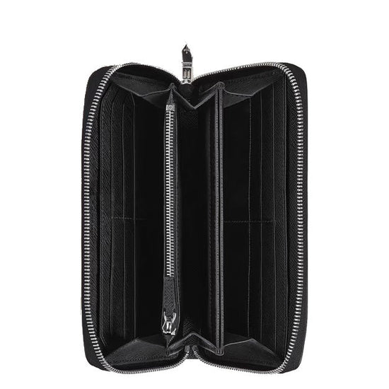 Realizzato in pelle Sartorial goffrata nera classica, questo portafoglio abbina funzionalità e design raffinato. Il distintivo cursore della cerniera a forma di pennino omaggia la tradizione della scrittura di Montblanc. All’interno, il portafoglio offre aperture per fino a 12 carte di credito, tre scomparti per banconote, un portamonete con cerniera sicuro e tre tasche aggiuntive per effetti personali piccoli.