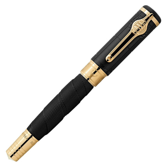 Solo pochi atleti vengono celebrati e onorati come Muhammad Ali, tre volte Campione del Mondo dei Pesi Massimi: le sue leggendarie gesta nel mondo dello sport e dell’attivismo per i diritti civili lo hanno reso uno degli atleti e degli operatori umanitari più influenti del XX secolo. Come atleta, Ali ha scosso il mondo intero con la sua forza, le sue capacità e la sua personalità, diventando Campione del Mondo dei Pesi Massimi all’età di soli 22 anni. I suoi più grandi trionfi, tuttavia, sono stati frutto del suo impegno umanitario. Realizzato in pregiata resina nera, il cappuccio riproduce la forma di un sacco da boxe, mentre il design del corpo ricrea le fasce da boxe indossate dai pugili per proteggere le mani. Il cappuccio presenta vari elementi decorativi, fra cui una celebre esclamazione di Ali, e una farfalla ispirata al suo tipico stile di combattimento: Volteggia come una farfalla, pungi come un’ape . Il cono a punta riprende proprio quest’ultimo concetto e reca incise quattro linee che rappresentano le corde del ring. Le iscrizioni sul cono si riferiscono alla vitoria di Ali ai Giochi Olimpici di Roma del 1960, e al primo campionato mondiale dei pesi massimi, che vinse a Miami nel 1964. L’anello del cappuccio presenta i dettagli della sua vittoria, ovvero il fatto di aver vinto al settimo round per KO tecnico. Per celebrare il suo primo titolo, l’emblema Montblanc in resina bianca è ornato dal numero 1 . Per enfatizzare il suo successo, la clip riproduce la forma di una cintura da campione di boxe con il suo nome.