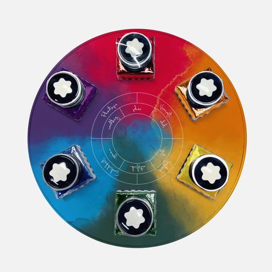 Set di boccette d’inchiostro, Writers Edition Homage to Johann Wolfgang von Goethe – 6 x 30 ml Questa edizione è un omaggio alla Teoria dei colori di Johann Wolfgang von Goethe. La palette cromatica presenta 6 diverse tonalità di inchiostro: Amethyst Purple (viola), Egyptian Blue (blu), Modena Red (rosso), Manganese Orange (arancione), Golden Yellow (giallo) e Irish Green (verde). Ogni boccetta contiene 30 ml.