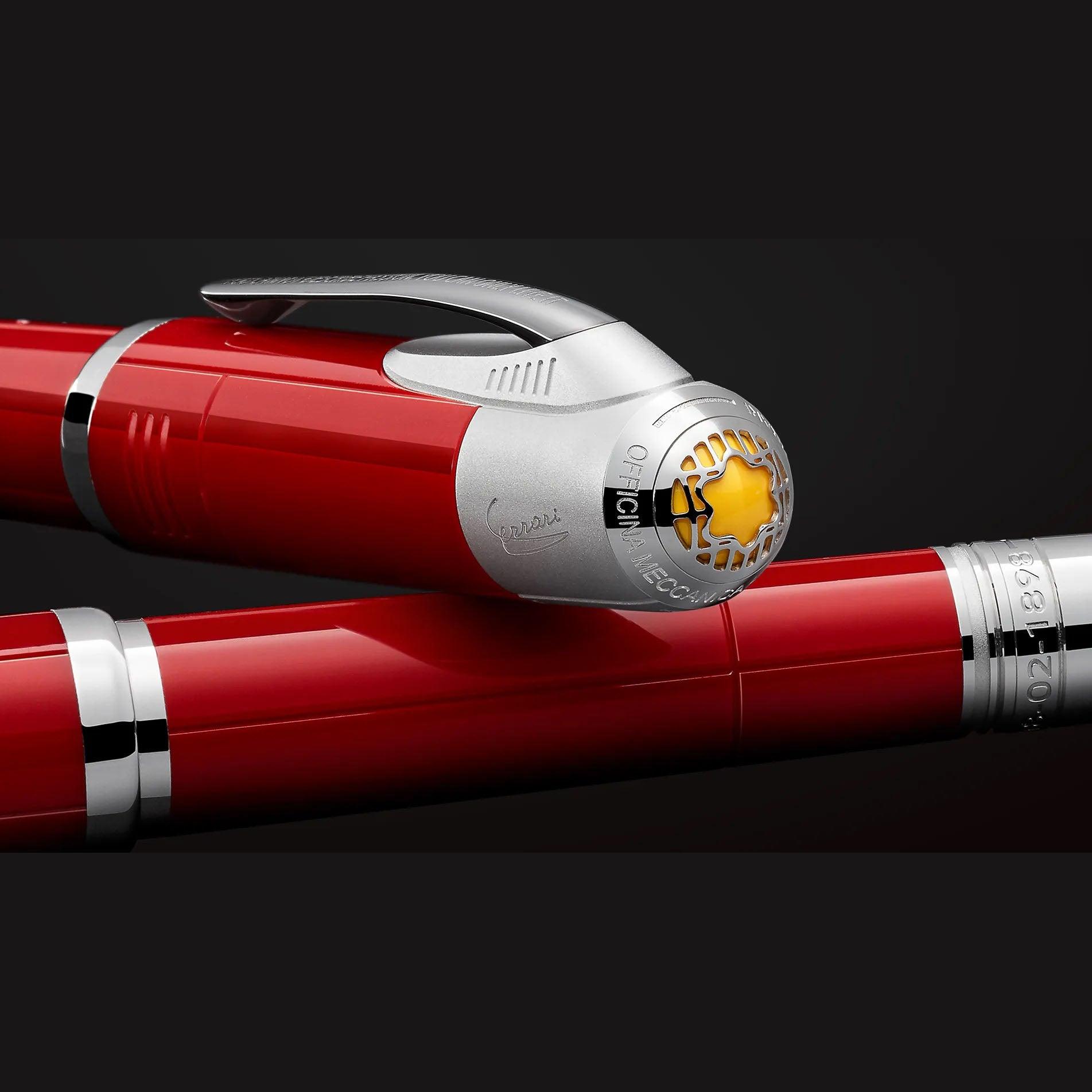Nel 2021 Montblanc rende omaggio al visionario Enzo Ferrari: pilota automobilistico e imprenditore, fonda la leggendaria Scuderia Ferrari e dà vita ad un impero internazionale, il cui nome è ora sinonimo di superba qualità e passione per la velocità. Realizzata in pregiata resina rossa, quest’edizione simboleggia l’inizio della passione di Enzo Ferrari per le corse automobilistiche. Il colore si ispira allo speciale “Rosso 70 Anni”, una tonalità creata appositamente in occasione del 70° anniversario della Scuderia Ferrari, la quale ha dato vita a iconiche sfumature vermiglie negli anni. La parte superiore del cappuccio è coronata dall’emblema Montblanc incastonato in una griglia di metallo su una superficie gialla, omaggio a Modena, città natale di Enzo Ferrari. La parte posteriore del cappuccio sfoggia il cavallino rampante, emblema delle automobili Ferrari. La clip in metallo è decorata da una famosa citazione di Enzo: “Non si può descrivere la passione, la si può solo vivere”. Il cono mostra due date importanti per l’inizio della carriera di Enzo Ferrari. Il pennino in oro massiccio Au585 lavorato a mano presenta l'incisione di un volante “Ferrari 250 GTO” e di uno dei soprannomi di Enzo Ferrari - “Il Pilota”.
