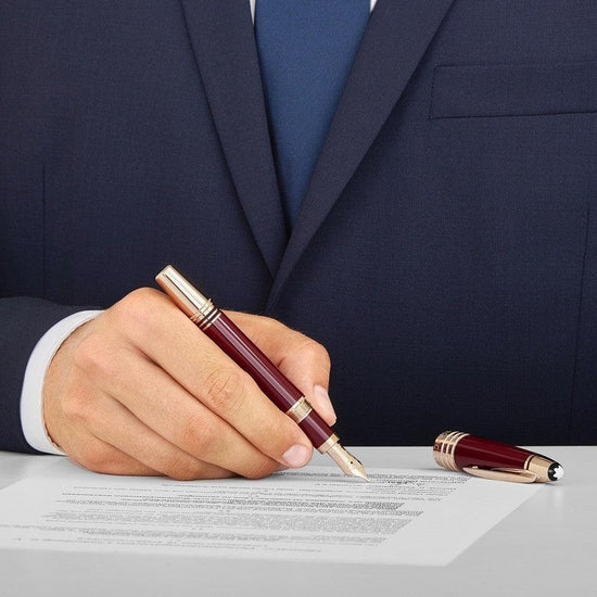 Omaggio a una delle figure più amate della storia contemporanea, l’Edizione Speciale John F. Kennedy offre riferimenti simbolici alla vita di J.F. Kennedy attraverso raffinati dettagli decorativi. La pregiata resina color bordeaux ricorda il celebre stile Ivy League di Kennedy e si ispira all’epoca in cui frequentava l’università di Harvard. Le iniziali “JFK” sono incise sulle finiture oro tonalità champagne della clip e i tre anelli finitura oro tonalità champagne del cappuccio rappresentano i tre fratelli di Kennedy. Per rendere omaggio ai sogni e alle speranze nazionali riposti nel programma spaziale Apollo di Kennedy, il pennino in oro Au 585 reca l’incisione del modulo lunare che atterrò sulla luna nel 1969. L’Edizione Speciale è coronata dall’emblema Montblanc in pregiata resina.