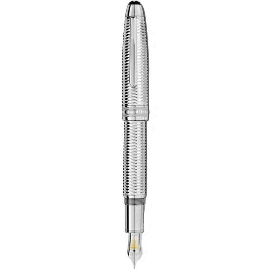 Montblanc stilografica Meisterstück Geometry Solitaire LeGrand punta M finitura platino colore argento 118097