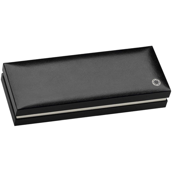La Meisterstück LeGrand in pregiata resina nera e dettagli finitura platino, coronata dall'emblema a forma di stella bianca e completata da un pennino in oro lavorato a mano, rappresenta un'esclusiva icona di design. Perfetta compagna di viaggio con il pratico sistema di riempimento delle cartucce.
