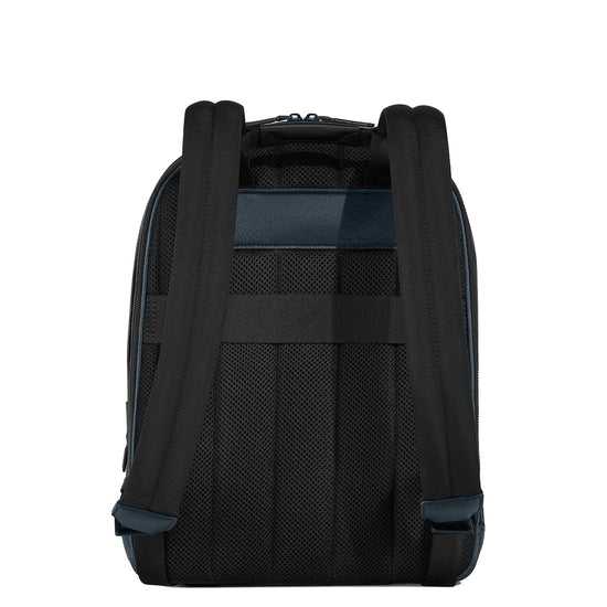 Coniugando praticità e stile urbano sofisticato, questo zaino è l’alleato insostituibile per il tuo quotidiano. Realizzato in pelle Sartorial goffrata in una raffinata combinazione bicolore di blu e nero classici, è pensato per offrire funzionalità. I tre scomparti con cerniera offrono ampio spazio per documenti, dispositivi e strumenti da scrittura, mentre la tasca esterna con zip permette di accedere facilmente ai piccoli oggetti essenziali. Lo scomparto esterno è decorato con l’audace emblema Montblanc, che apporta un’ulteriore nota distintiva.